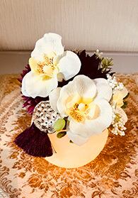 アーティフィシャルフラワー。LED灯器での仏花アレンジメントです。